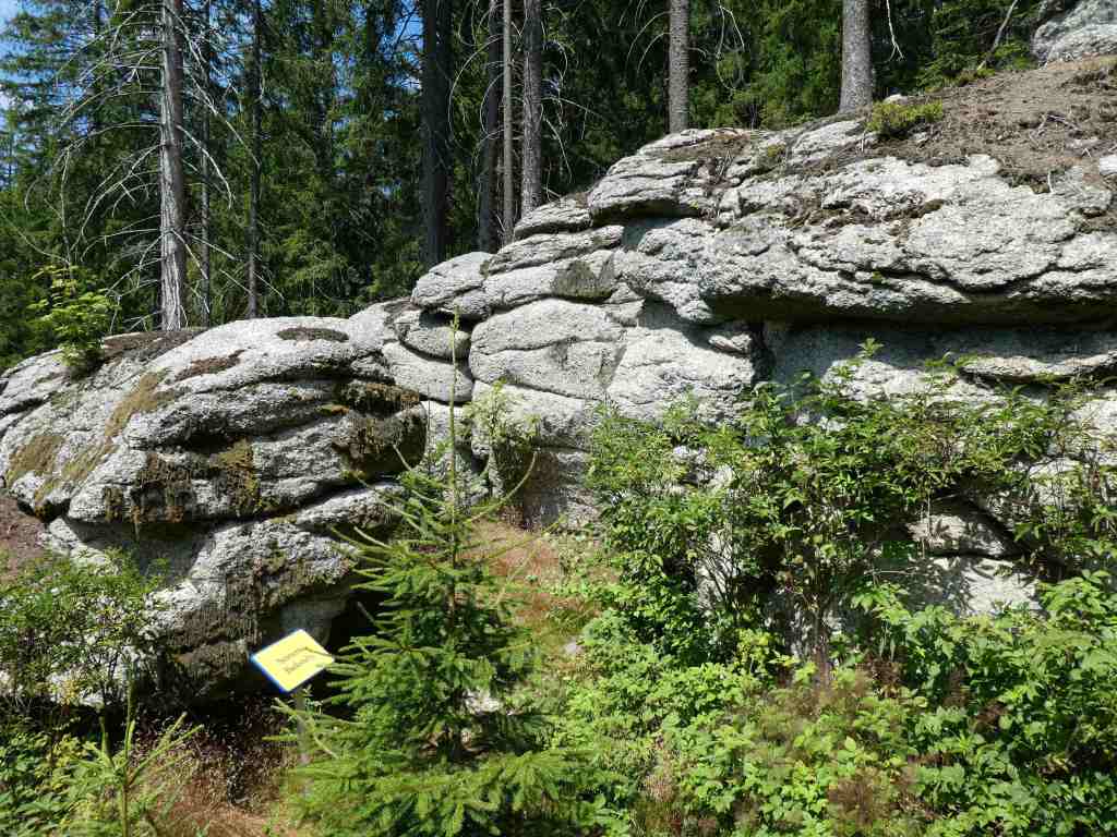 Eigentlich sind wir aber wegen der vielen interessanten Steingebilde, die der Umgebung ihren Stempel aufdrücken, hergekommen. Und so beginnt die Wanderung 7-4 mit dem Titel „Weg der Giganten“ in unserem druckfrischen Buch „Wandern im Waldviertel“ mit einem Besuch bei den spektakulärsten Felsriesen der Umgebung.