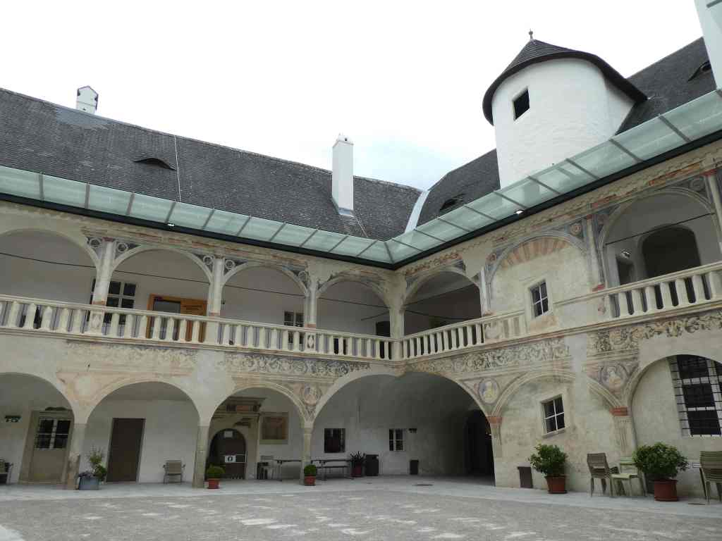 Abschließend sollten wir uns noch ausreichend Zeit nehmen, das Schloss Pöggstall zu besuchen. Dieses Bauwerk kann auf etwa 750 Jahre Baugeschichte zurückblicken. Von 1478 an gehörte das schon 200 Jahre zuvor als Wasserburg entstandene Anwesen der Familie Rogendorf, die es als Residenz ausbaute, u. a. mit der vorgelagerten charakteristischen Rundbastei, die 1530 nach Albrecht Dürers Architektur- und Befestigungstheorien entstanden ist und als Waffenlager und Stallung diente. Erst 1601 wurde das Schloss weiterveräußert. Seit 1986 ist es Eigentum der Gemeinde.