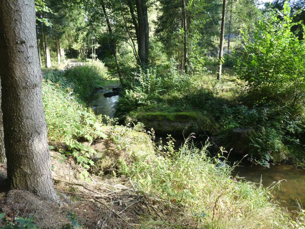 Bei der Umrundung des Haselnussbergs mit seinen Steinernen Stuben queren wir in den satten Wäldern mehrere Bächlein, die in verschiedene Richtungen entwässern. Man kann sich beim Marschieren einen Spaß machen und raten, ob das Wasser jeweils Richtung Nordsee oder Schwarzes Meer fließt.
