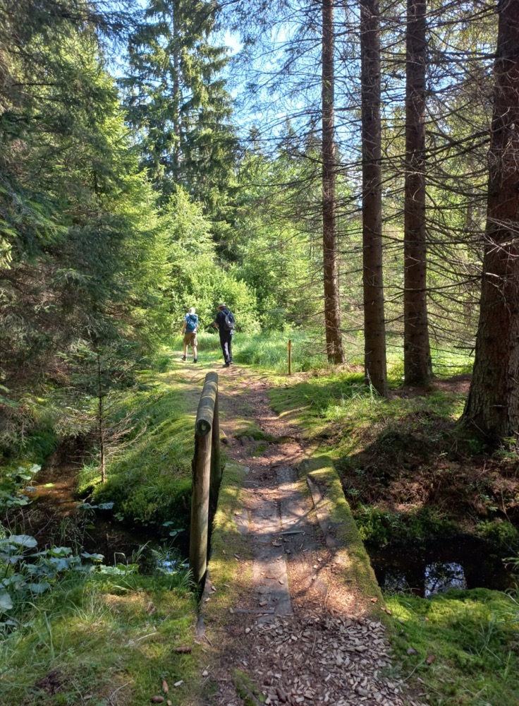 Frisch und munter wandern wir auf dieser 17,4 km langen Route zuerst am Teich entlang, baden eventuell ein wenig darin und sehen uns auf der Fortsetzung des Wegs einen alten Holztriftkanal an, …