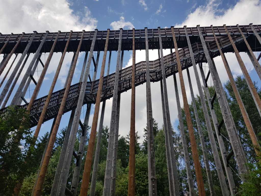 Der andere Vorschlag beschreibt die Rundwanderung „Stiege zum Himmel“ über den Wackelsteinweg zum Naturpark Hochmoor Schrems. Ausgangspunkt ist der Hauptplatz der Stadtgemeinde Schrems. Der Weg führt auf Wackelstein- und Christophorusweg zu den Naturdenkmälern „Kas im Loab“ und großer Wackelstein von Amaliendorf und weiter am Steinbruch Hartberg entlang ins Hochmoor Schrems, wo Sie die Himmelsleiter erwartet, von der ein grandioser Blick auf die Moorlandschaft genossen werden kann. Abschließend können Sie sich im Besucherzentrum UnterwasserReich über Flora und Fauna des Hochmoors informieren und auch laben. Nach 14 km erreichen Sie wieder den Ausgangspunkt.