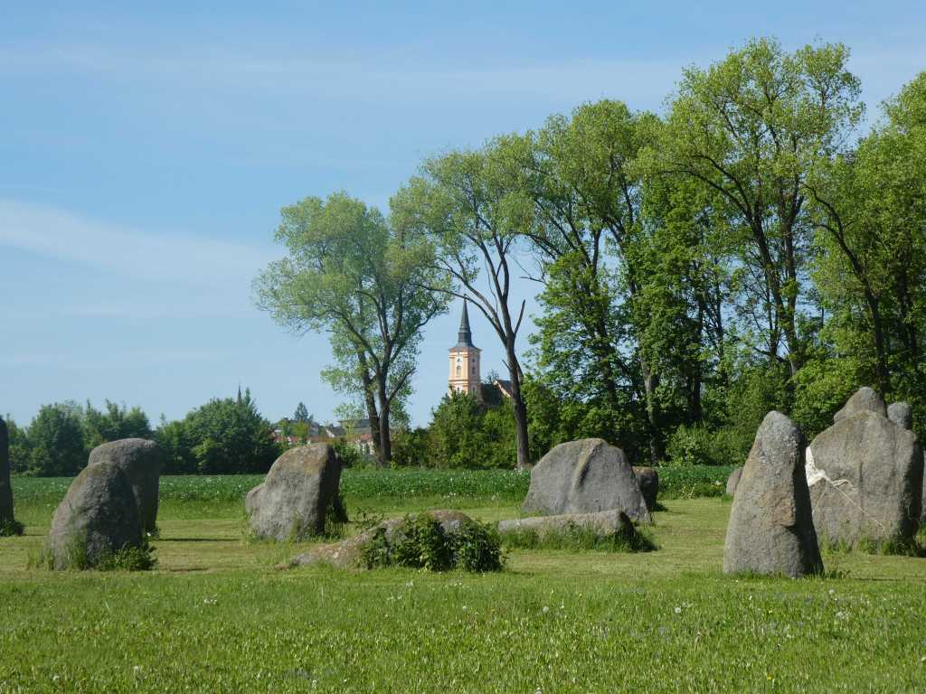 Starten wir am Hauptplatz, so umrunden wir das vierkantige Schloss und verlassen über den Thayatalweg die Stadtmauerstadt. Durch eine neue Wohnsiedlung und an der Kläranlage vorbei gelangen wir fast zur B 5, wo uns links im Feld eine seltsame Ansammlung von Steinen auffällt.