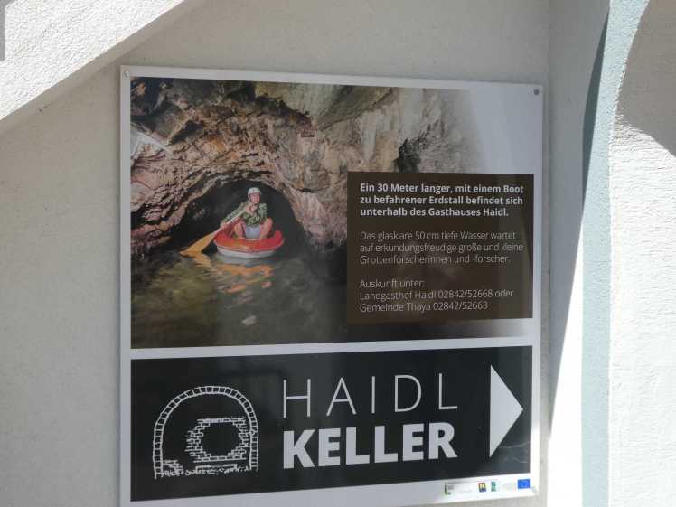Wir steuern aber zunächst den Landgasthof Haidl an, wo wir einen Hinweis auf den Haidl-Keller sehen.