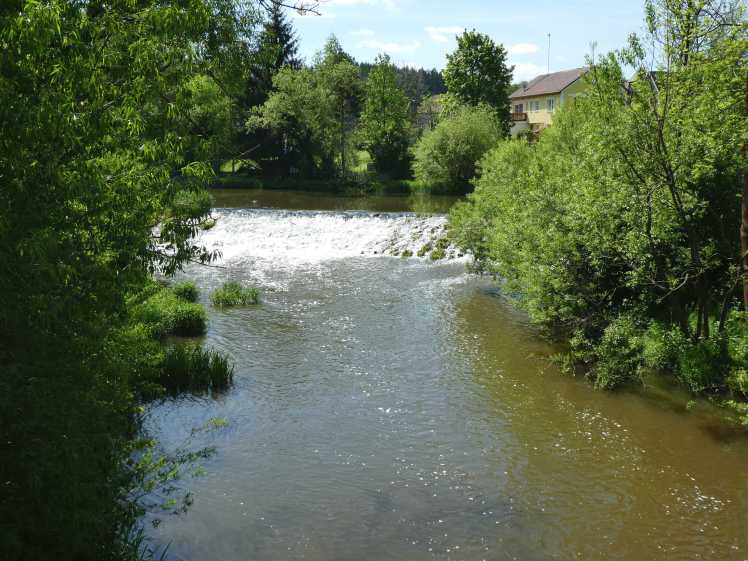 Nach Unterquerung der Waidhofener Straße (B 5) und einem Firmengelände überqueren wir erstmals die Deutsche Thaya und gelangen zum Golfplatz, vor dem wir links abschwenken, durch ein Waldstück über einen Hügel wandern und im Absteigen Vestenötting ansteuern. Kurz geht es direkt neben dem Flusslauf weiter; wir überqueren die Thaya zum zweiten Mal, um nach Kleineberharts zu gelangen.