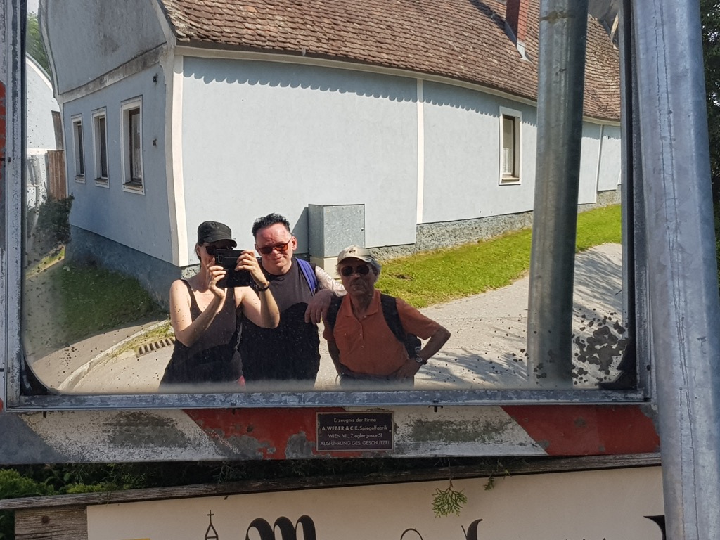 Diesem nicht unoriginellen Bild wollten wir eine aktuelle Aufnahme gegenüberstellen, auf der wir alle drei am selben Ort zu sehen sind. Ist sich aber leider nicht mehr ausgegangen, weil A. ewig Winter war und B. eine Tagesfahrt zum Nebelstein dadurch erschwert wurde, dass man nirgends einkehren (oder aufs Klo gehen) konnte/kann. Aber wir holen das nach, versprochen. Demnächst in diesem Theater … (ph)